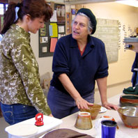George guides with a very gentle hand, through simple touch of the clay. In groups he would round us up, and we would work into the night (sometimes by candlelight) in a collective creativity of large clay forms spanning one table to another. These temporary forms stood to remind us of the connections that are possible when we risk touching the clay with abandon and love, and when we are willing to let go, allowing the clay to open our hearts. We learned to refrain from judging ourselves, and the creative currents would rise within us. Moreover, George Kokis reminded me in graduate school to have fun; he reminded me to be open to outcome and not attached to it; to trust by being comfortable with uncertainty; to make marks and images from an inner place and to especially dance with the clay. It is with this spirit that I work in order to be an encouraging and kind teacher in the tradition of my mentors. Thank you George.